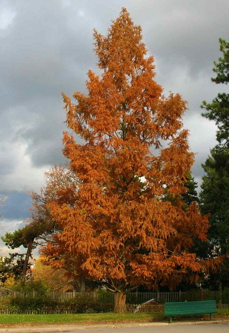 - Foliage: Its needles are deciduous, turning bronze in autumn before falling.